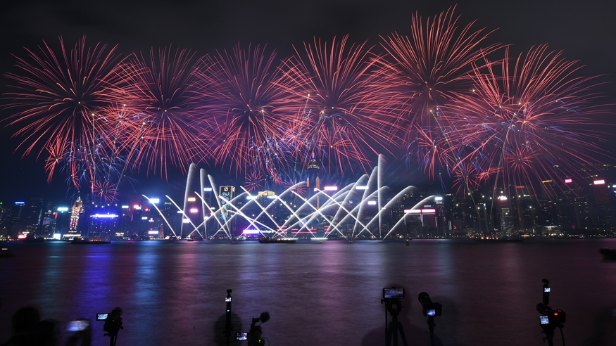 特写:维港烟花璀璨 照亮香港新春